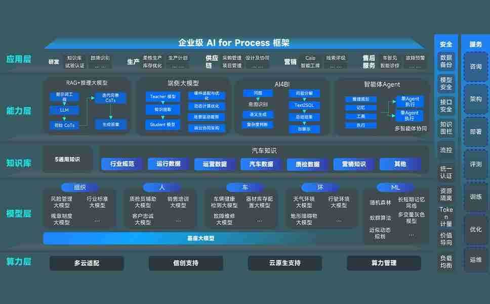 超凡国际问学智车解决方案是一套基于AI技术的汽车行业智能化系统,,,,覆盖从底层算力到顶层AI应用的全栈方案。。。。方案由算力层、、模型层和应用层组成:算力层,,,,方案支持多种一体机配置,,具备云端灵活部署、、、多云适配以及动态优化计算资源的能力;模型层,,,超凡国际问学平台版提供了企业级AI应用一站式构建与管理平台,,,支持基于后训练强化技术的汽车企业专属模型的训练、、、评测和运营;应用层,,超凡国际问学DeepSeek版提供包括超级员工、、、、智能招采、、、、智能营销、、、智能客服、、、、AI for BI等一系列解决方案,,可助力汽车行业实现数字化转型,,,,让管理更智能、、响应更敏捷。。。